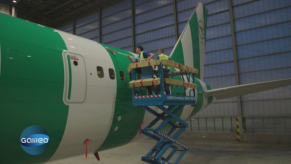 Haben Sie sich schon einmal gefragt, wie ein Flugzeug gereinigt wird? "Galileo"-Reporter Mario Apfelbaum hat es herausgefunden und zeigt, wie man mit akribischer Handarbeit und Muskelkraft dafür sorgt, dass Fenster, Toilette und Flügel blitzblank werden!