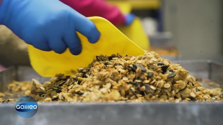 Haferflocken, Nüsse, Früchte und vielleicht auch etwas Schokolade - ein leckeres Knuspermüsli braucht eigentlich gar nicht so viel. Das bedeutet allerdings nicht, dass die Herstellung mit wenig Aufwand verbunden ist. "Galileo" zeigt, wie die beliebten Frühstücksflocken in einer Müsli-Manufaktur und in einem Großbetrieb produziert werden.
