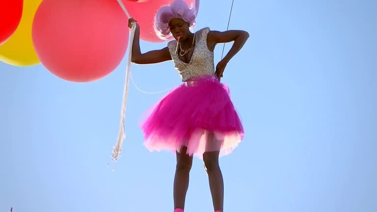 Beim Ballon Shooting hängt Aminata an Stahlseilen gesichert 20 Meter über dem Boden. Plötzlich verkrampft sie, "mir ist kotzübel!" Und dann passiert es auch schon...