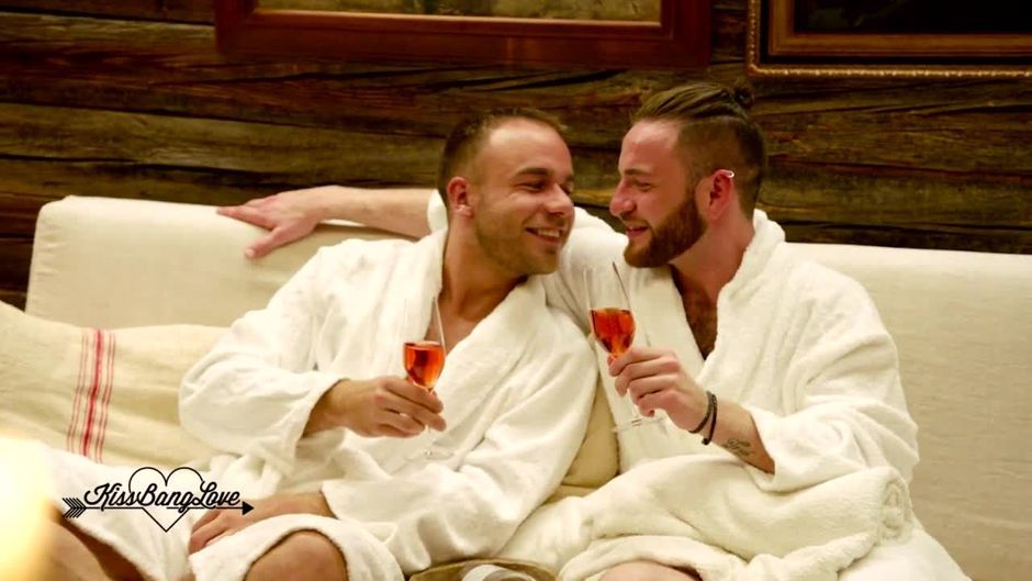 Da lassen es sich aber Zwei gut gehen! Mit Sekt und ganz entspannt im Bademantel bringt Peer ein ernstes Thema zur Sprache: Wie steht Freddy zu Kindern?
