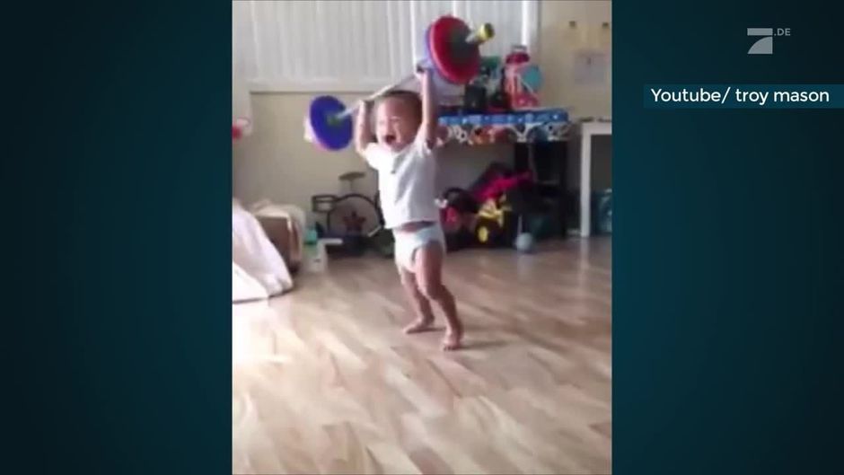 Baby Workout: Kleinkind stemmt Gewichte wie ein Profi
