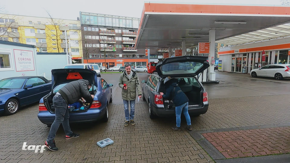 Die Tankstelle wird wieder zum Spielplatz. Alexander Königsmann spielt mit Dunja und Metin Kofferraum-Bingo. Wer als erstes den gesuchten Gegenstand aus dem Kofferraum holt, bekommt einen Punkt. Bei drei Punkten winken der Sieg und 50 Euro.